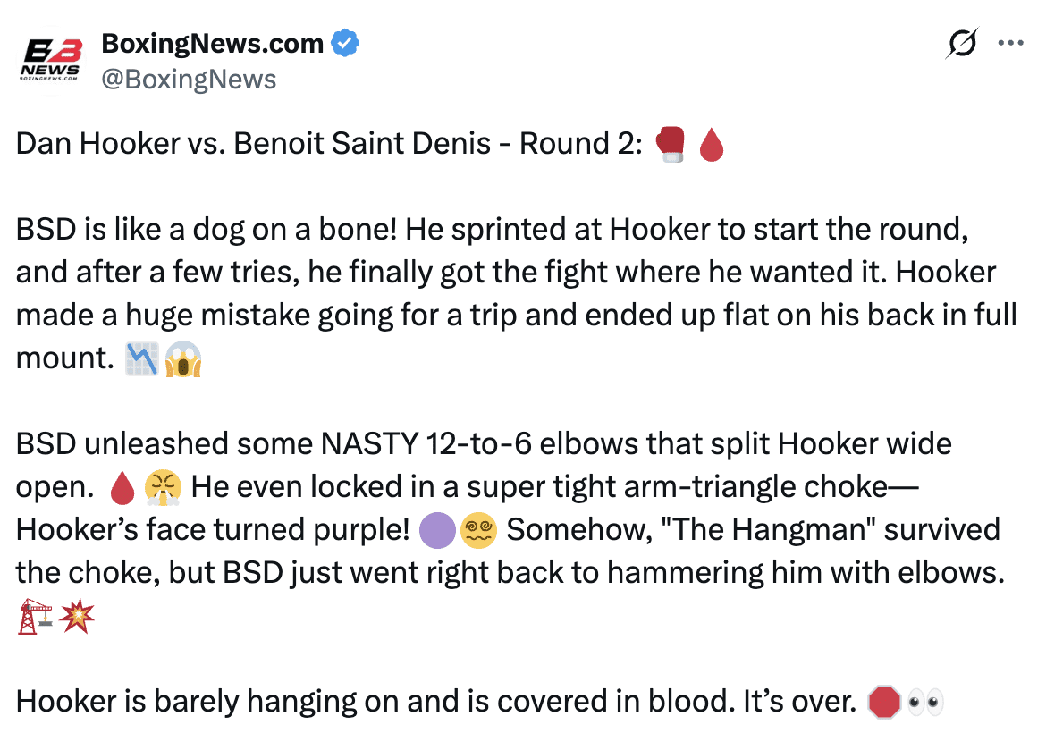 Benoît Saint Denis stopped Dan Hooker in the second round at UFC 325, as you can see how the fight played out live.