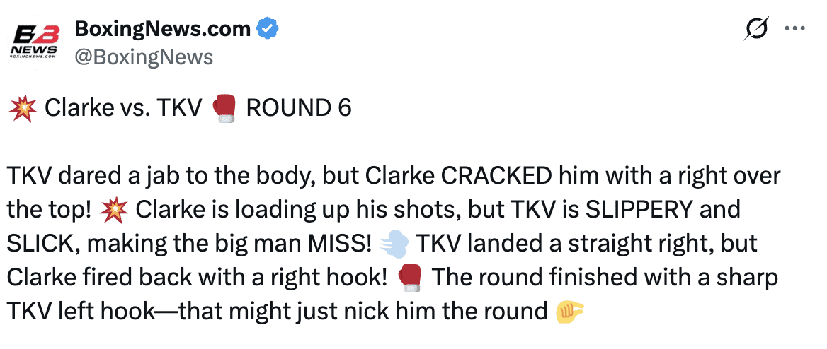 Jeamie TKV beat Frazer Clarke in a split decision, 115-113 TKV, 115-112 (Clarke), to become the British Heavyweight Champion, as you can see how the bout played out live.